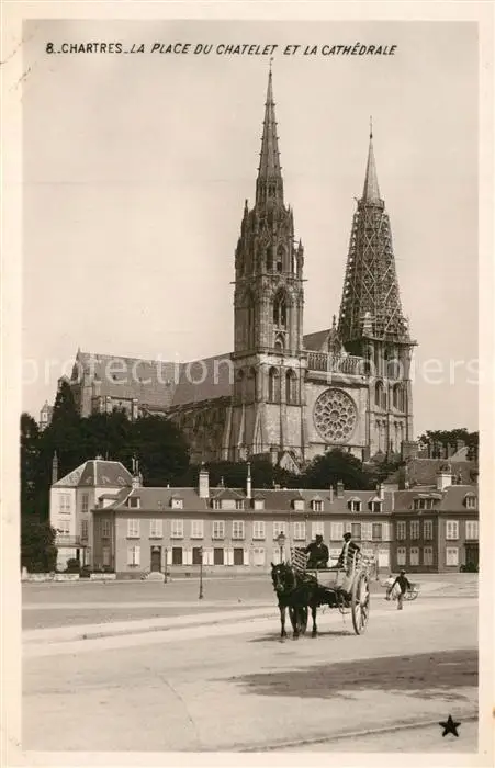 Chartres_Eure_et_Loir Place du Chatelet et la Cathédrale Chartres_Eure_et_Loir postalisch nicht gelaufen 1921-1965 Erhaltung siehe scans [FriedD77] Frierer