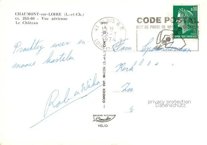 Chaumont-sur-Loire Château vue aérienne Chaumont-sur-Loire postalisch gelaufen 1974 Erhaltung siehe scans [FriedD77] Frierer
