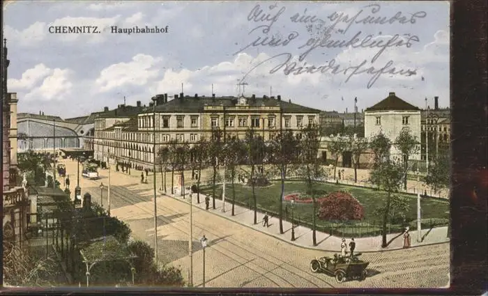 Chemnitz Hauptbahnhof Strassenbahn Chemnitz postalisch gelaufen 1917 gute Erhaltung Alte Ansichtskarte Postkarte Stefaufe