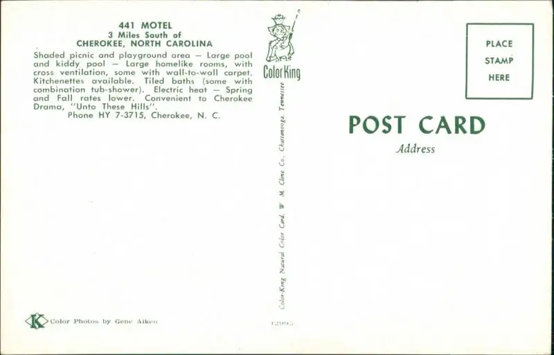 Cherokee 441 Motel Picnic and Playground Area, Pool, US Postcard 1970
