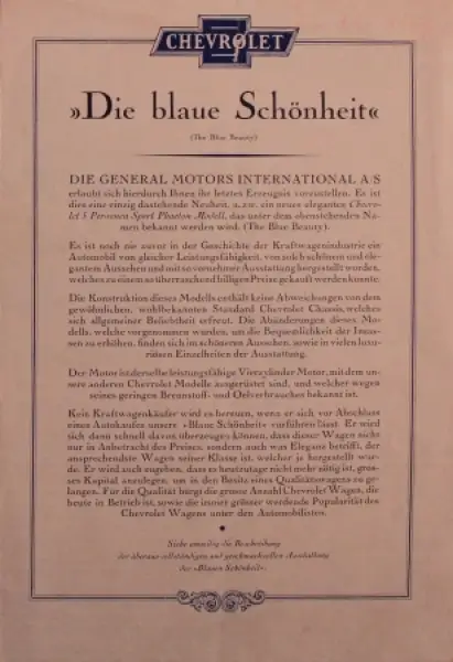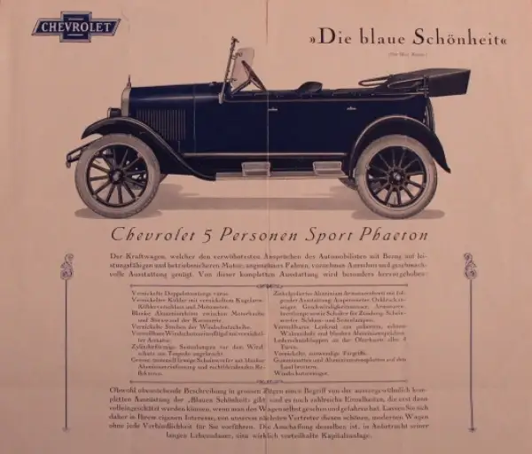 Chevrolet Sport Phaeton Modellprogramm 1927 Automobilprospekt (7615)