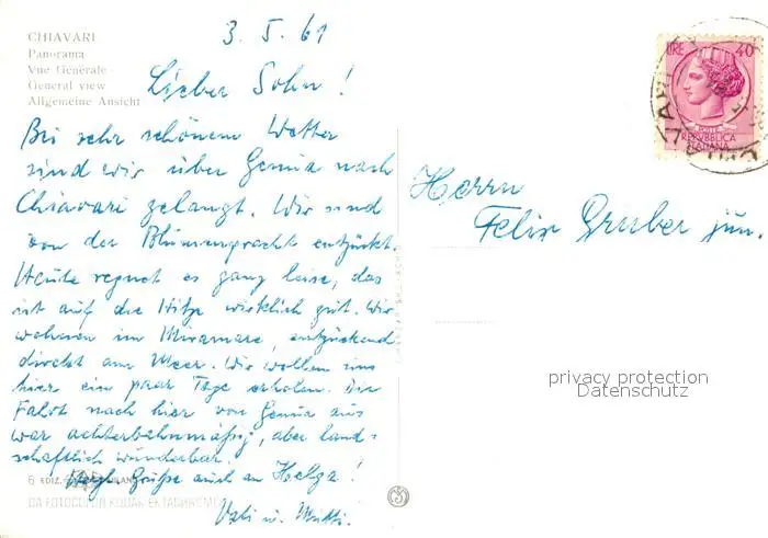 Chiavari Panorama Chiavari postalisch gelaufen 1961 Erhaltung siehe scans [KathaD81] Kathoren