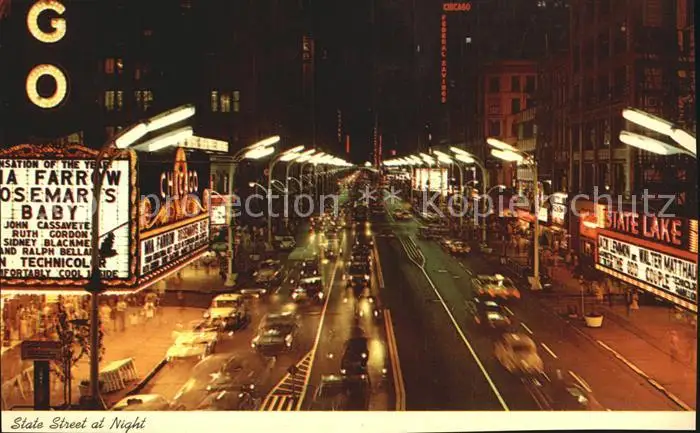 Chicago Illinois State Street Nacht Chicago postalisch gelaufen 1970 Erhaltung siehe scans Alte Ansichtskarte Postkarte Kathoren