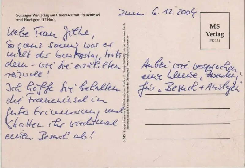 Ich hatte die Rechnung sofort als Vorkasse bezahlt, aber keine Zusendung der Karte erhalten. Trotz Nachfrage keine Rückmeldung bzw. Erklärung. Da es sich zum Glück nur um 1,70 € handelt, ist die Sache für mich erledigt, ärgerlich, aber zu verkraften. Mit den drei anderen Karten, die ich bestellt hatte, hat alles wunderbar geklappt.