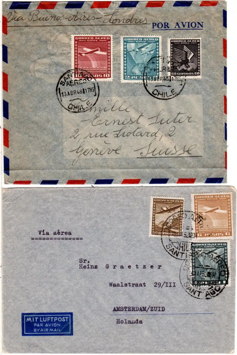 Chile 1948/59, 5 Luftpost Briefe n. Europa, dabei 1 Einschreiben