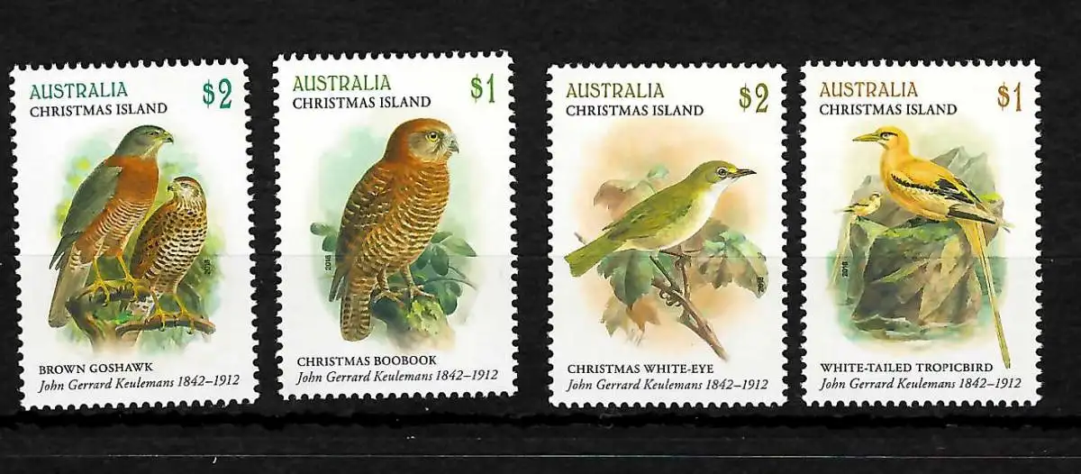 Chirstmas Island: 4 stamps, Bird-Lithos, Boobook, Goshawk, Tropicbird, White-Eye