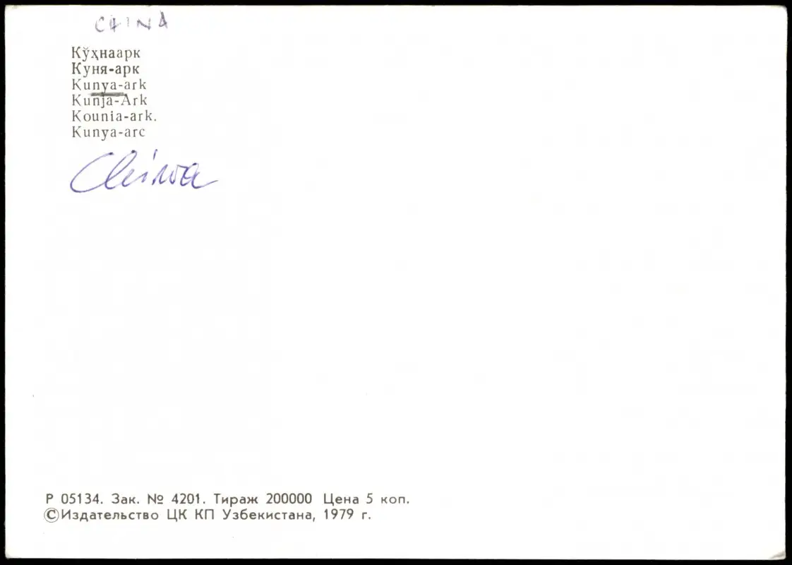 Chiwa Kunya-ark Кўҳнаарк/Kunya-ark (Usbekistan Postcard) 1979