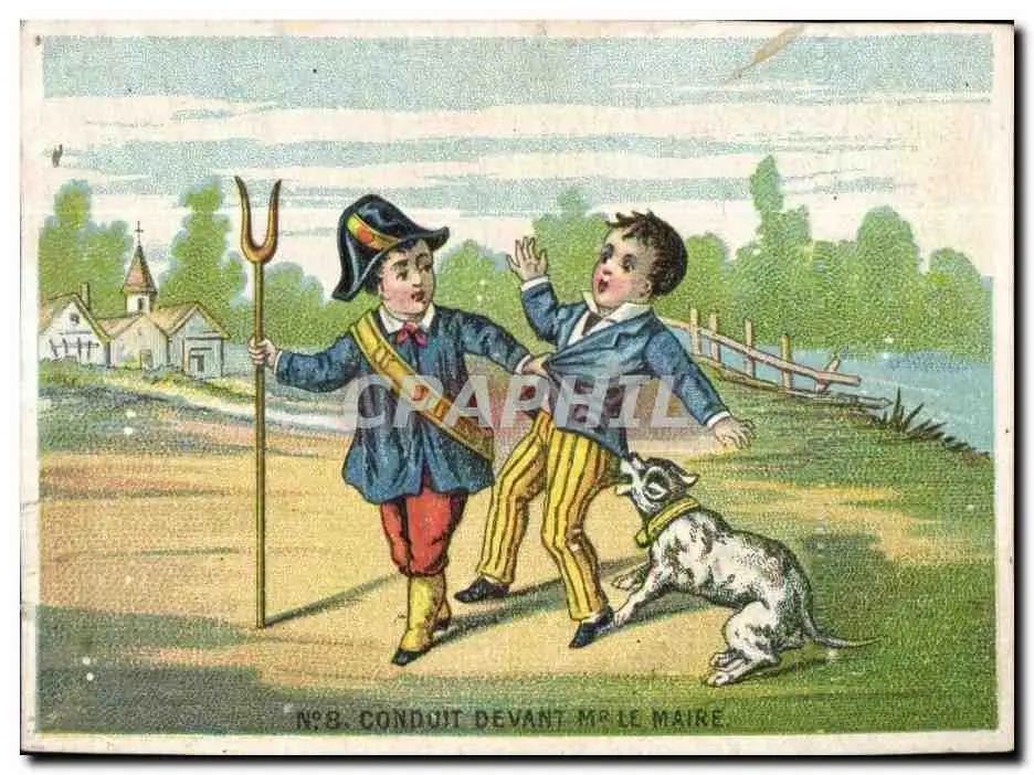 Chromo Conduit Devant Mr le Maire Chien Enfants