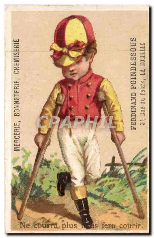 Chromo Ferdinand Poindessous Rue du palais la Rochelle Jockey Cheval Hippisme