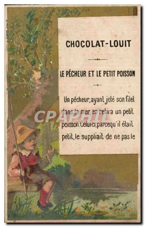 Chromo chocolet louit Le pecheur et le petit poisson Enfant peche