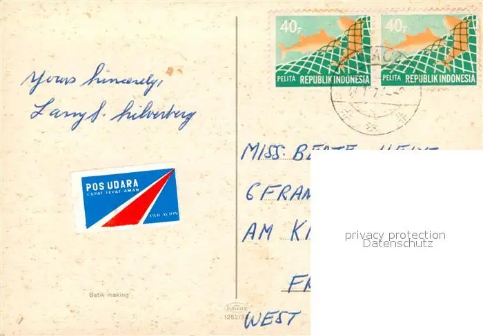 Cilacap Batik making postalisch gelaufen nach 1965 Erhaltung siehe scans [WerneD78] WernPID7