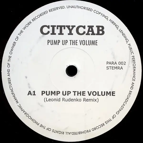 12" Maxi Citycab - Pump Up The Volume, neutrales Cover, Zustand Platte VG+; Made in Belgium 2007 Parachute PARA 002, Tracks Leonid Rudenko RMX, Original, Dub
