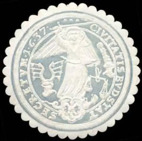 grau, weiß, geprägt, Größe/Zustand: 5 , guter Zustand, Original Verschluss-Siegelmarke aus Papier welche früher von Behörden, Firmen etc. zum Versiegeln der Briefe benutzt wurden