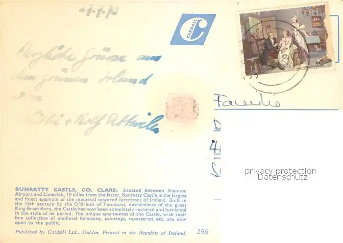Clare Bunratty Castle postalisch gelaufen 1979 Erhaltung siehe scans [WerneD78] WernPID7