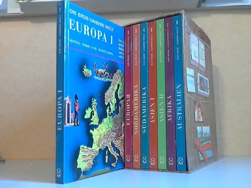 alle 8 Bücher sind altersbedingt in einem gutem, gebrauchten Zustand, die Einschzbhülle ist bestoßen, BAND 1: EUROPA 1.: Mittel-, Nord- und Westeuropa. BAND 2: EUROPA 2: Süd- und Osteuropa, Sowjetunion. BAND 3: NORD-AMERIKA BAND 4: SÜD-AMERIKA BAND 5: ASIEN 1: Zentral- und Ostasien, Inselindien BAND 6: ASIEN 2: Südasien und Vorderer Orient BAND 7: AFRIKA BAND 8: AUSTRALIEN: Ozeanien, Polargebiete, Die Welt in Karten Beschreibung vom Antiquariat Ardelt 4d1a Antiquariat Ardelt