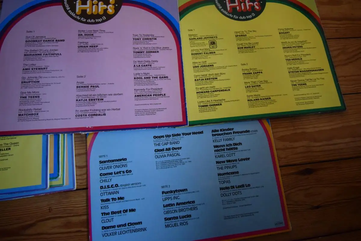 In den folgenden Anzeigen kommen jeweils ganze Jahrgänge der Serie Club 13 zum Verkauf . Ein Jahrgang besteht immer aus 6 Schallplatte , eine für jeweils 2 Monate und einer Extra Scheibe für den jeweiligen Jahrgang . Praktisch für alle Sammler, welche Chart Musik dieser Jahre gerne haben möchten und nicht jedes Album eines Künstlers einzeln kaufen wollen . Auch für Feiern und Feten sind diese Sampler bestens geeignet .