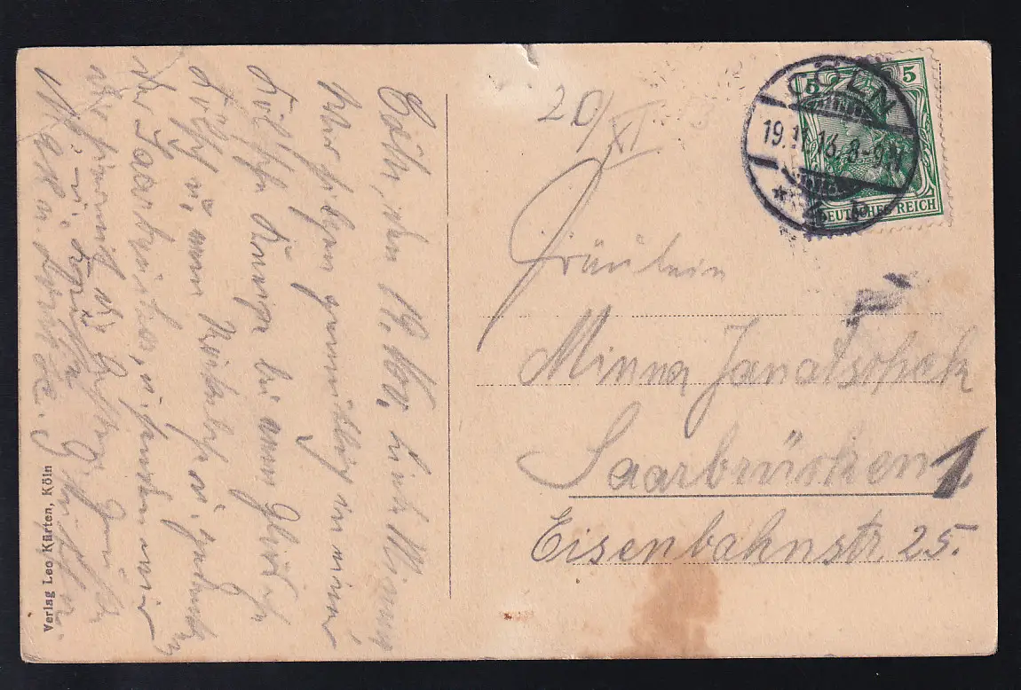 Cöln a. Rh. Rheinpartie am Bollwerk, Karte kl. Einriss und min. Eckbug