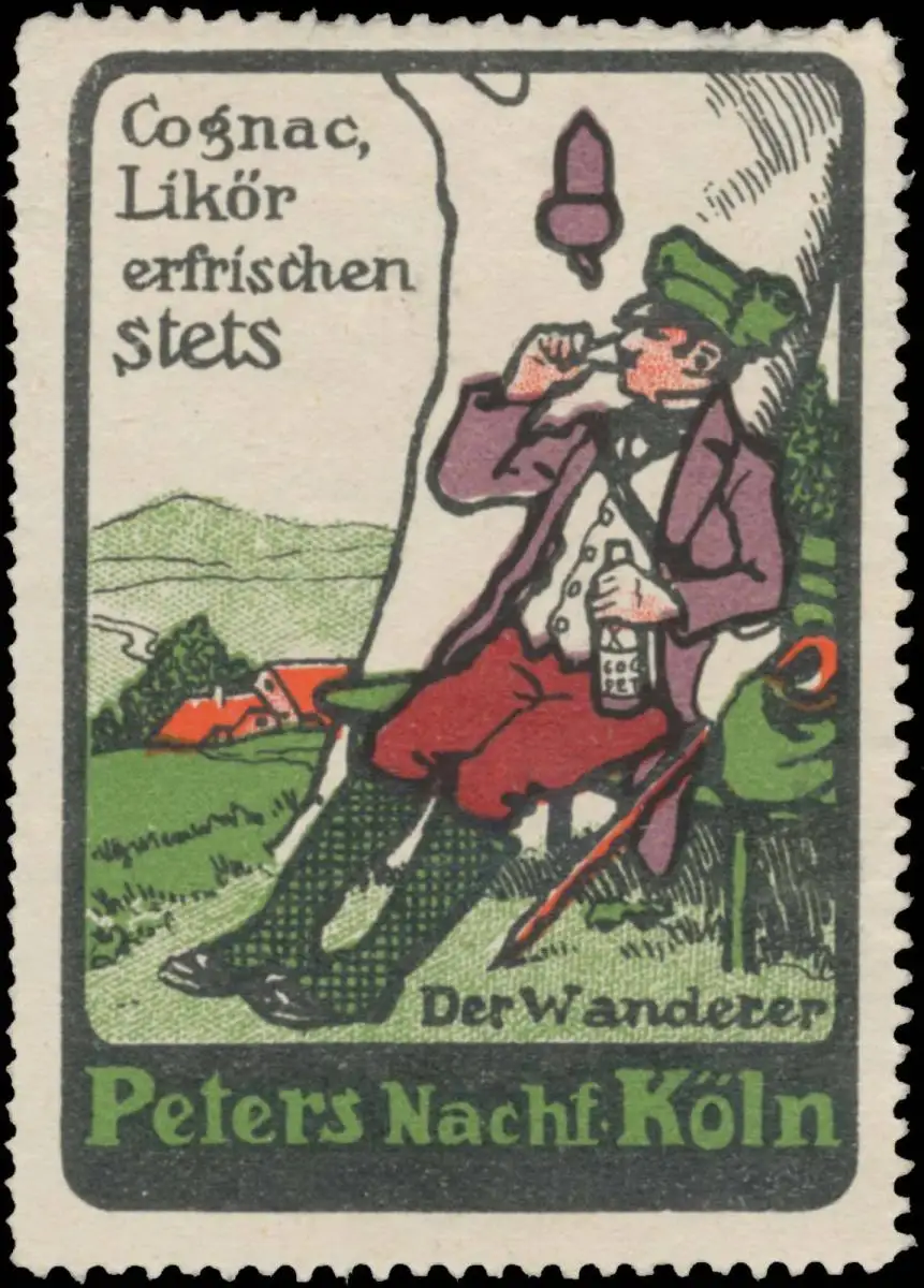der Wanderer, wandern, Größe/Zustand: 6x4 , beschädigt, Original alte Reklamemarke die seinerzeit für die Werbung benutzt wurde