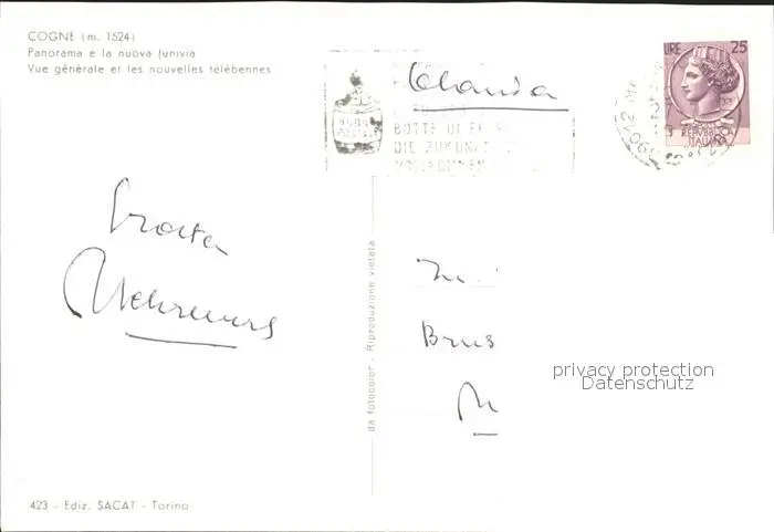 Cogne Seilbahn postalisch gelaufen nach 1965 Erhaltung siehe scans Alte Ansichtskarte Postkarte LiesID40