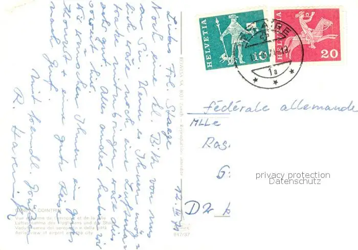 Cointrin Fliegeraufnahme mit Flughafen und Stadt Cointrin postalisch gelaufen 1971 Erhaltung siehe scans [WerneD78] WernPID7