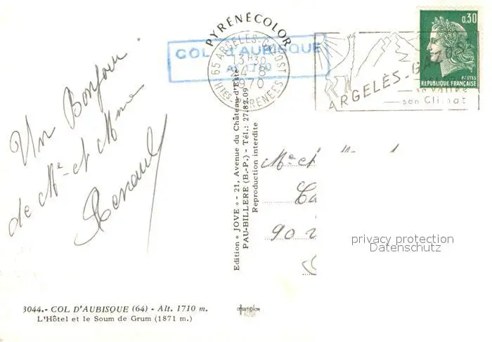 Col_d_Aubisque Hôtel et le Soum de Grum Col_d_Aubisque postalisch gelaufen 1970 Erhaltung siehe scans [FriedD77] Frierer