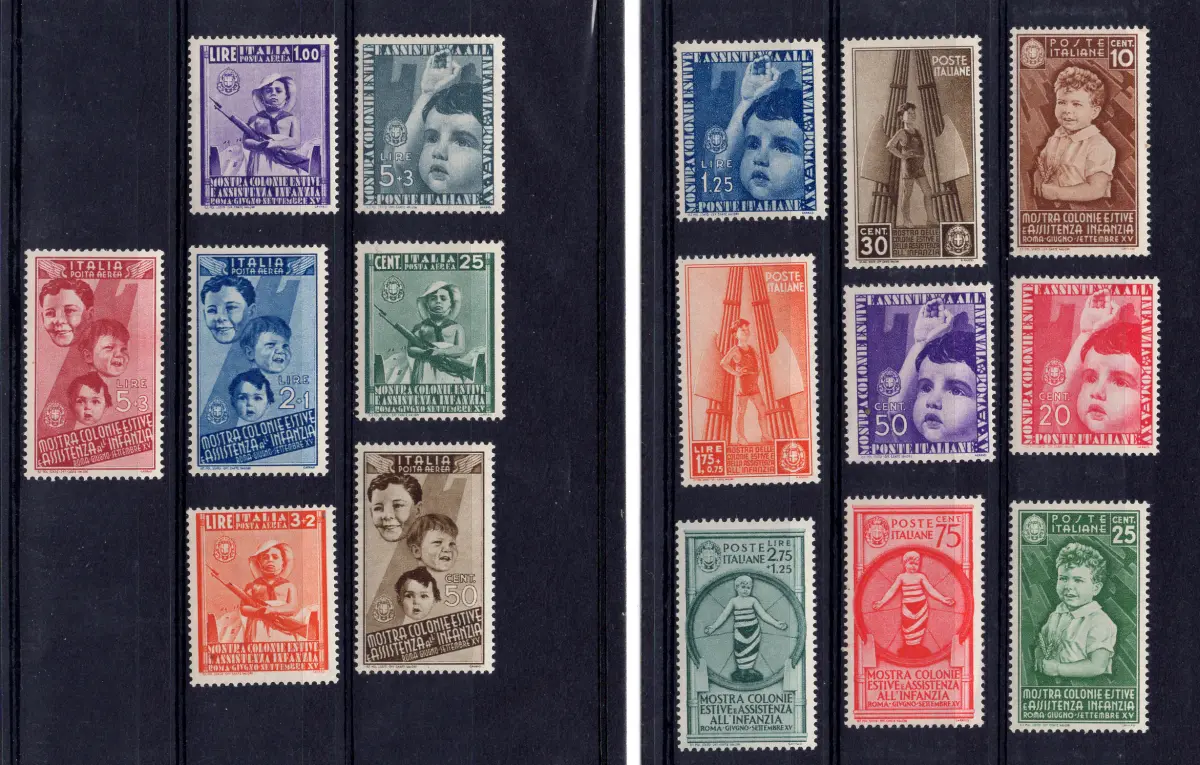 * MH - Colonie Estive n. 406/415 + P.A. n. 100/105 Komplettserie gut zentriert mit leichter Linguella-Spur - Kat. 320 n. 148/18