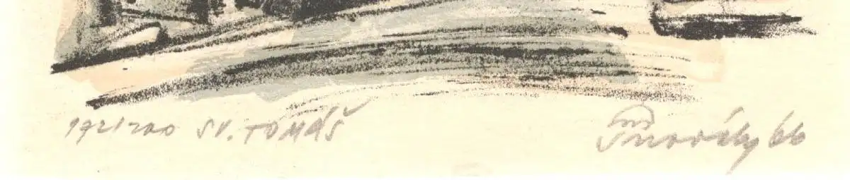 Colorierte Lithographie „St TOMAS“, signiert, ungerahmt