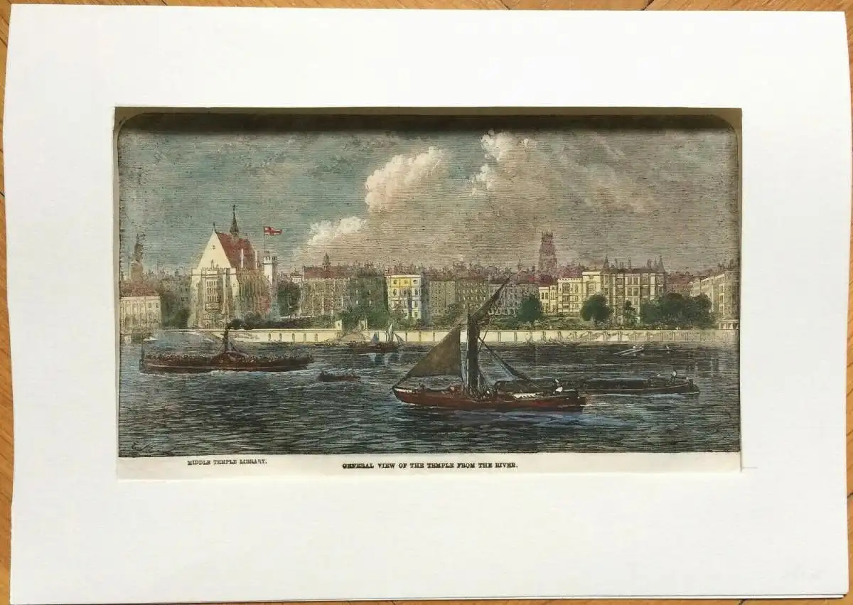 Holzstich „MIDDLE TEMPLE LIBRARY...“ im Passepartout