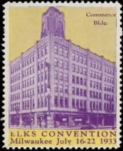 Elks Convention, Hochhaus, Größe/Zustand: 4x4 , guter Zustand, Original alte Reklamemarke die seinerzeit für die Werbung benutzt wurde