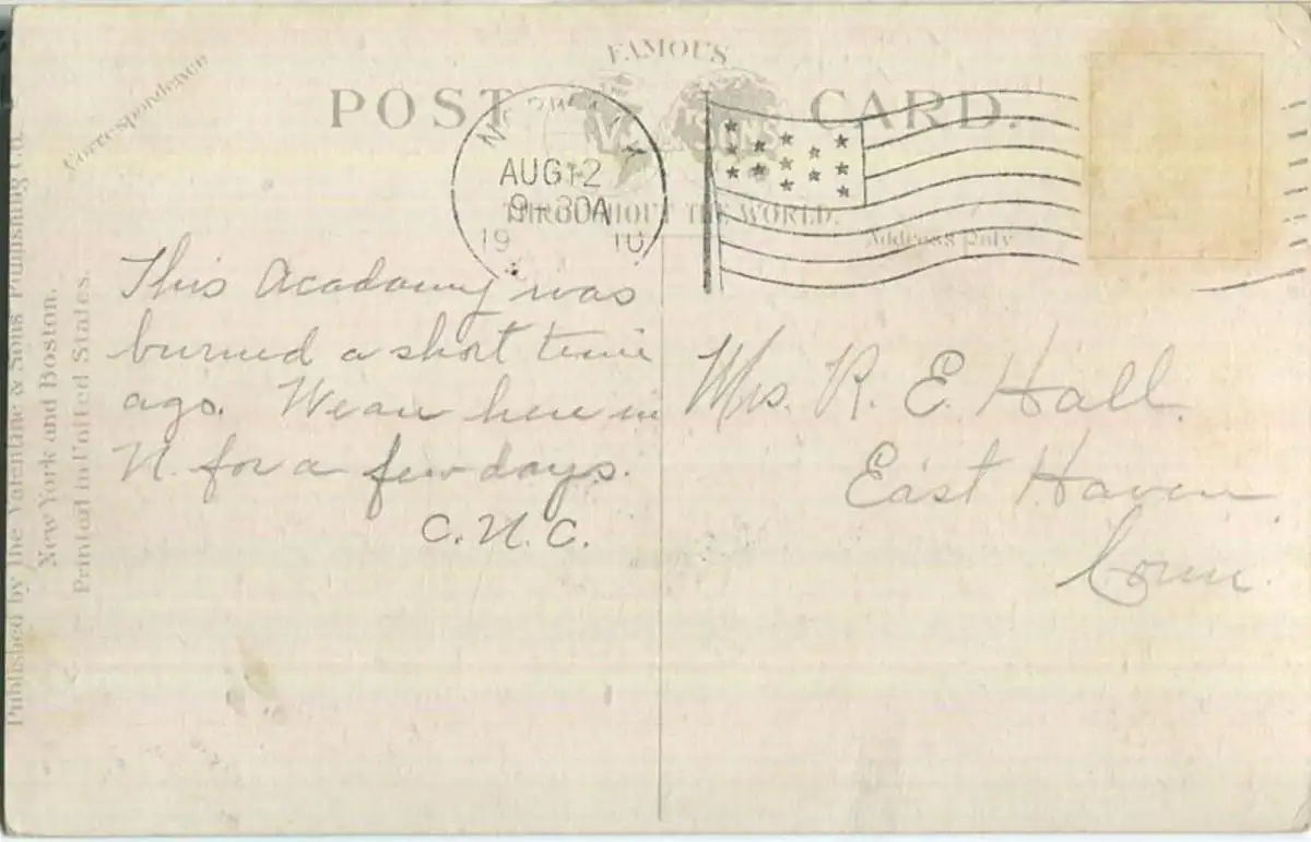 Connecticut - Norwalk - Overlook Miliary Academy - Briefmarke entfernt (G56067) gel. 1910