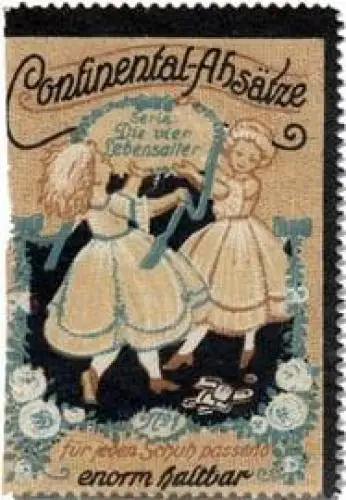 Für jeden Schuh passend, enorm haltbar. Serie: Die vier Lebensalter, Nr. 1, Schuhe, Kinder tanzen, Größe/Zustand: 6x4 , beschädigt, Original alte Reklamemarke die seinerzeit für die Werbung benutzt wurde