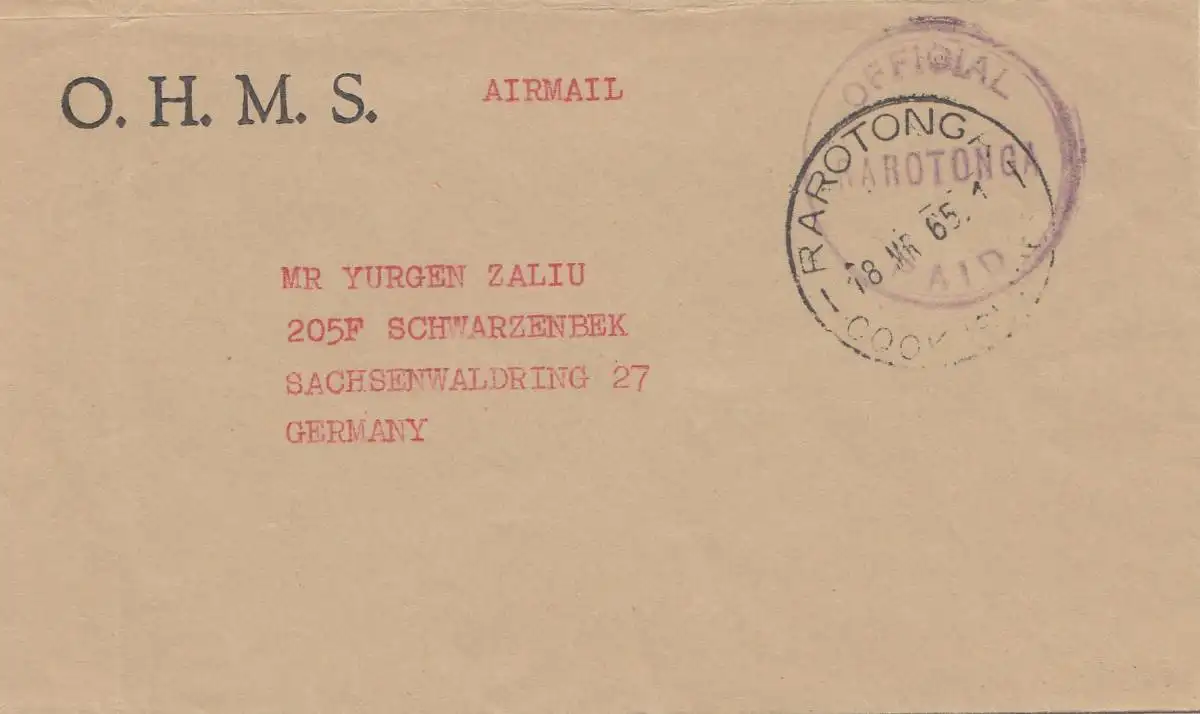 Cook Islands: Rarotonga 1965 to Schwarzenbeck/Germany