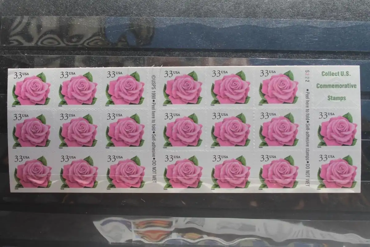 Coral Pink Rose; 20 Self adhesive 33 C. Stamps, 1999