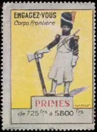 Engagez-Vous, Corps Frontiere, Frankreich, Signatur, Größe/Zustand: 5x4 , guter Zustand, Original alte Reklamemarke die seinerzeit für die Werbung benutzt wurde