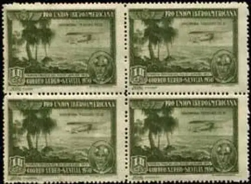 Pro Union Iberoamericana, Flugmarke, Block mit 4 Marken, Flugzeug, Größe/Zustand: , I-II, Original alte Reklamemarke die seinerzeit für die Werbung benutzt wurde