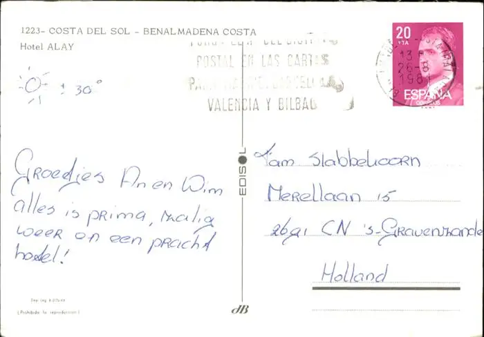 Costa Del Sol Hotel Alay Spanien postalisch gelaufen 1981 Alte Ansichtskarte Postkarte Elvigtle