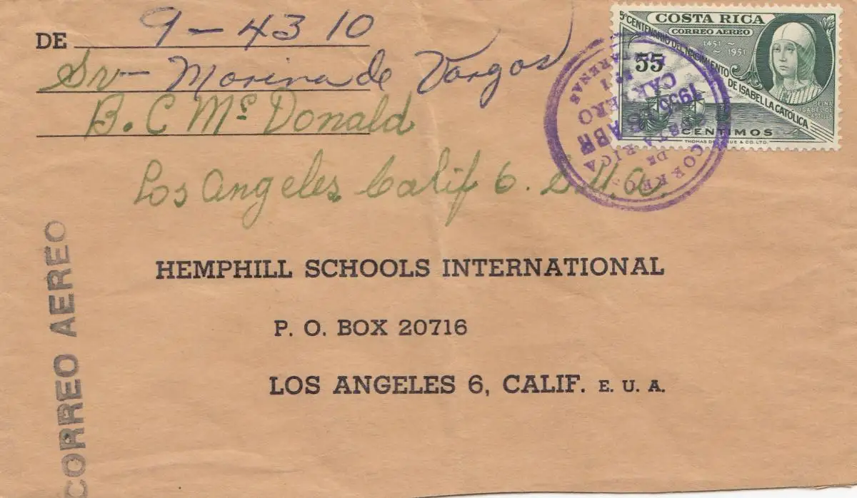 Costa Rica: 1955: Aero San Jose to Los Angeles