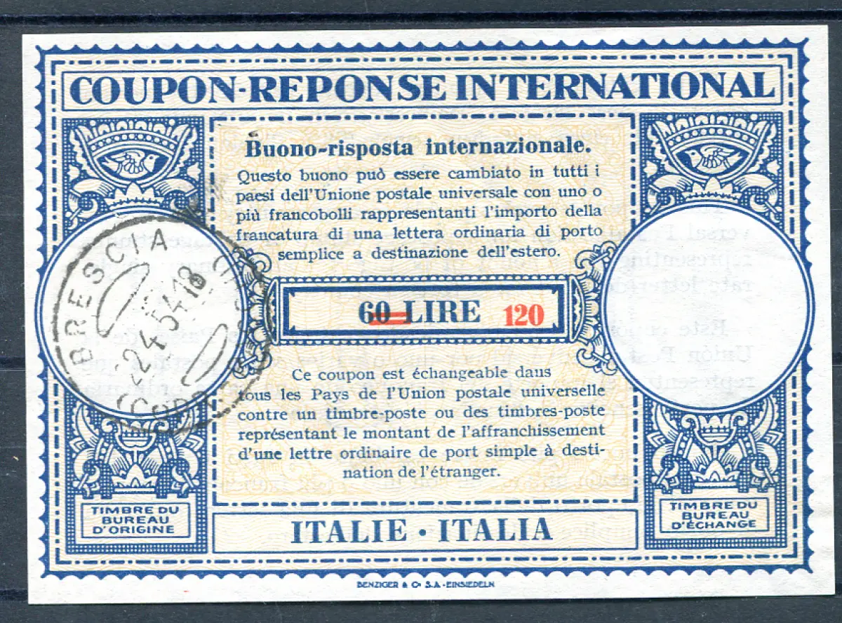 Coupon Response Mod. London aufgedruckt l. 120 von 60 Modul - Gute internationale Antwort - Provisorisches Londoner Modell überdruckt l. 120 von 60 (Kat. Filagrano M 14) - perfekt - ungewöhnlich - Katalog Euro75 Cod.1412/WEB