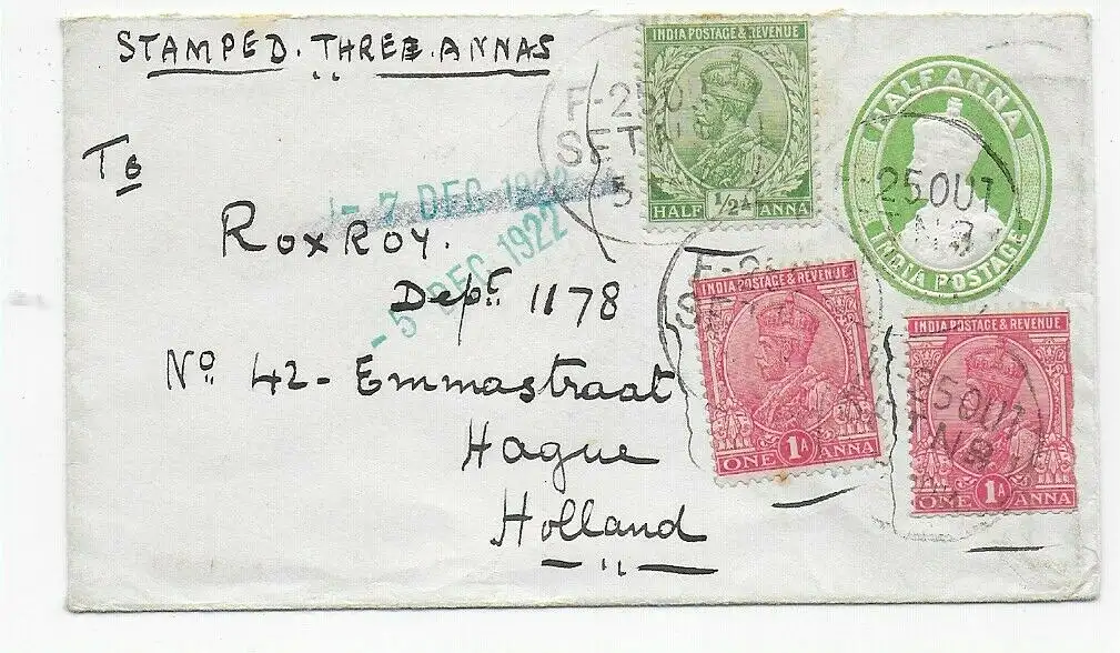 sehr schöner und seltener Bahnpostbeleg aus Britisch Indien F4 OUT / SET N°1 mit Mischfrankatur King Edward / King George 1912 nach nach Frankfurt am Main versandt. Ich bin sehr zufrieden, vielen Dank!