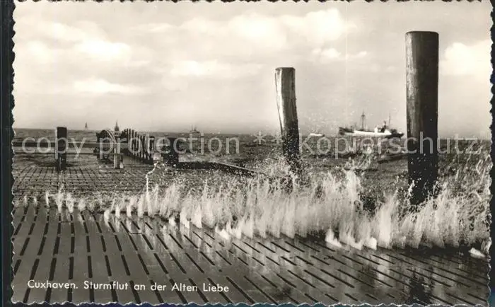Cuxhaven Nordseebad Sturmflut an der Alten Liebe Cuxhaven postalisch nicht gelaufen 1921-1965 Alte Ansichtskarte Postkarte MattID68