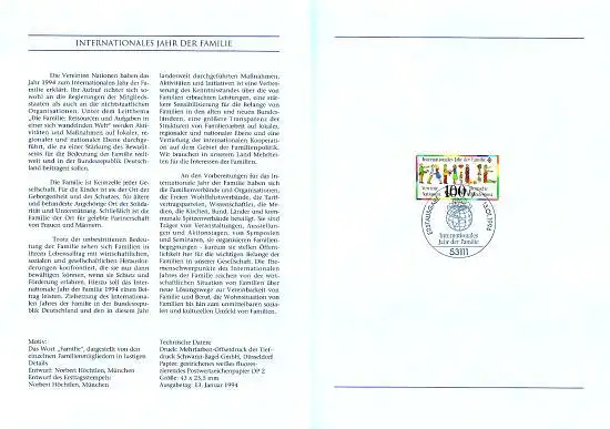 D,Bund Blatt 3/94 Int. Jahr der Familie (Marke MiNr.1711)