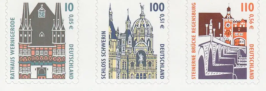 D,Bund Mi.Nr. 2187-2189BC SWK, oben geschnitten, selbstklebend (3 Werte)