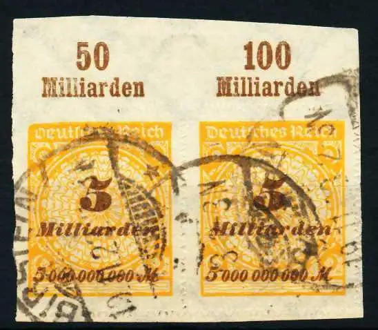 5 Mrd Mark Wert aus der Inflationsausgabe Kreis mit Rosetten- (Korbdeckel) Muster, durchstochen, sign. Infla Berlin, Oberrand Plattentype A