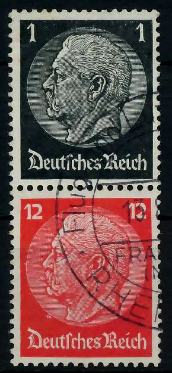 1 + 12 Zusammendruck aus der Ausgabe Hindenburg mit WZ4 (MichelNr.: 301470, 512, 519)