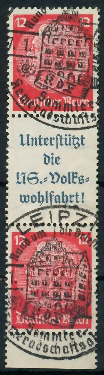 12 + A8.2 + 12 Zusammendruck aus der Ausgabe Hindenburg mit WZ4 (MichelNr.: 301580, 519, A8.2, 519)