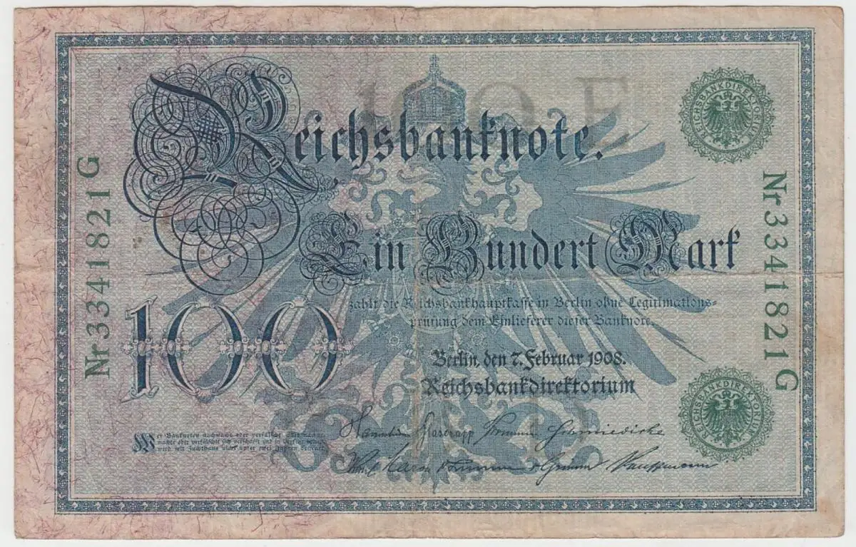 (D1010) Geldschein Reichsbanknote, 100 Mark 1908