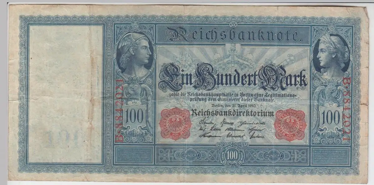 (D1065) Geldschein Reichsbanknote, 100 Mark 1910