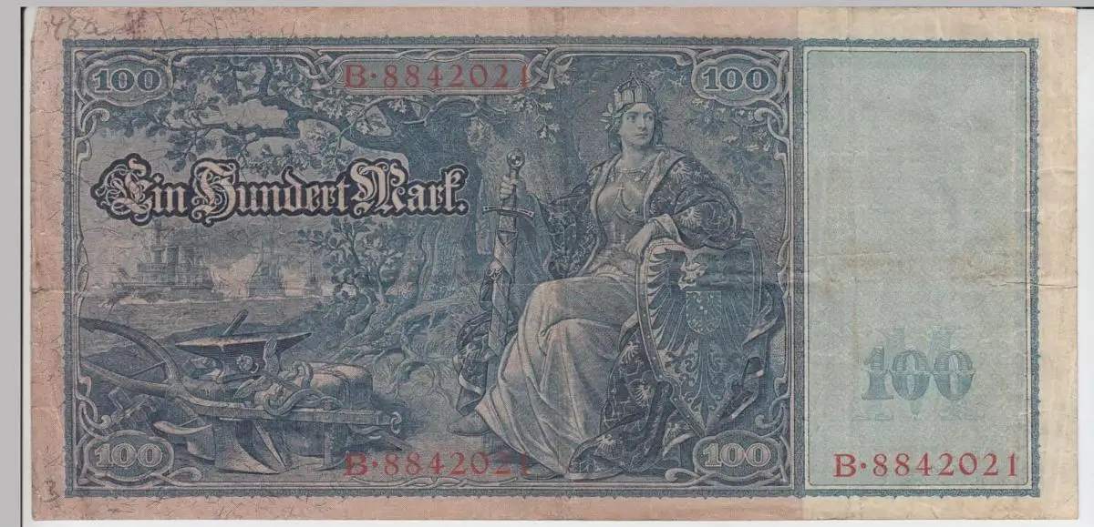 - (D1065) Geldschein Reichsbanknote, 100 Mark 1910