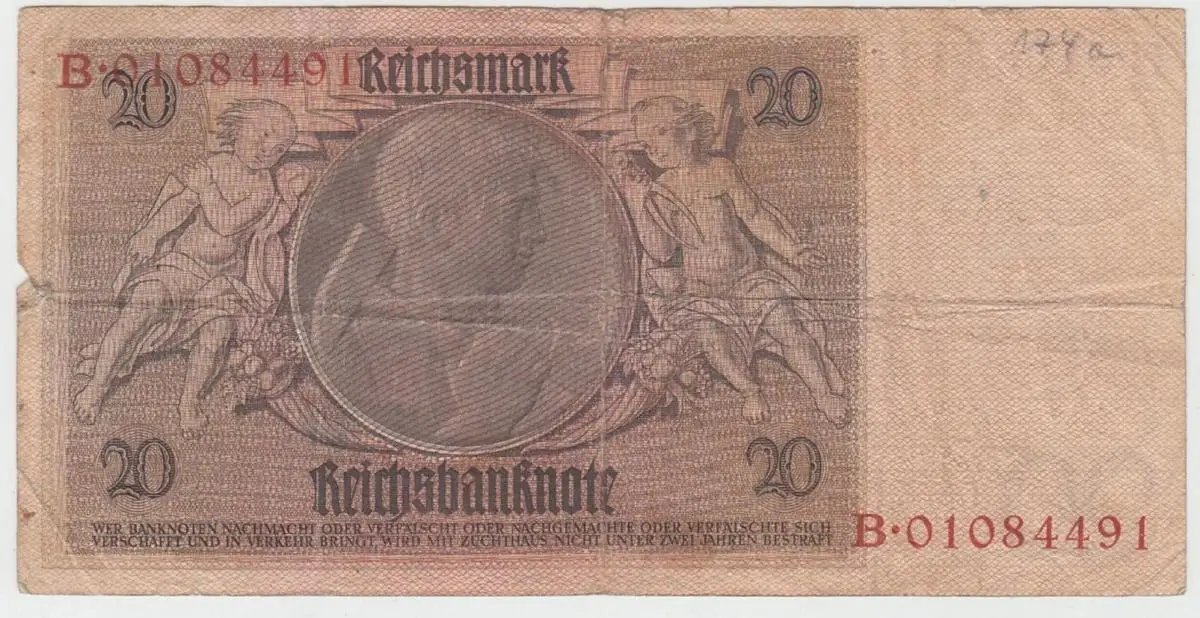 - (D1124) Geldschein Reichsbanknote, 20 Mark 1929