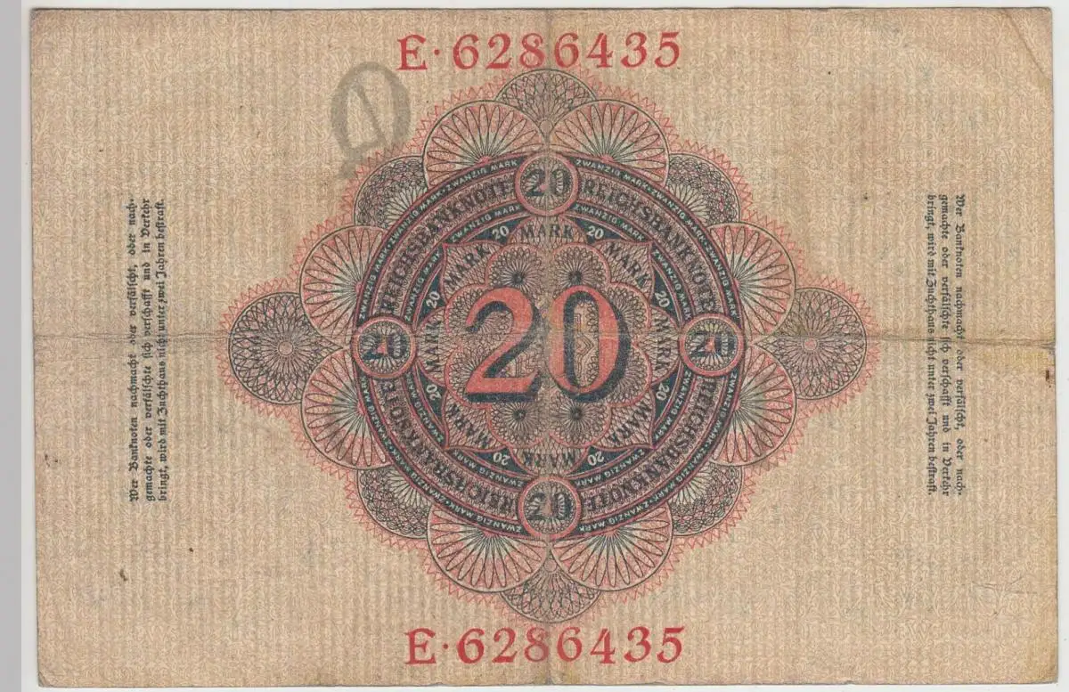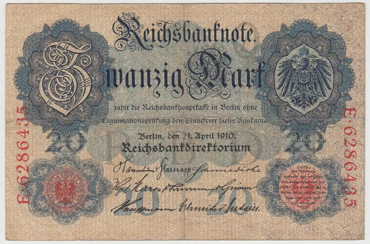- (D1164) Geldschein Reichsbanknote 20 Mark 1910